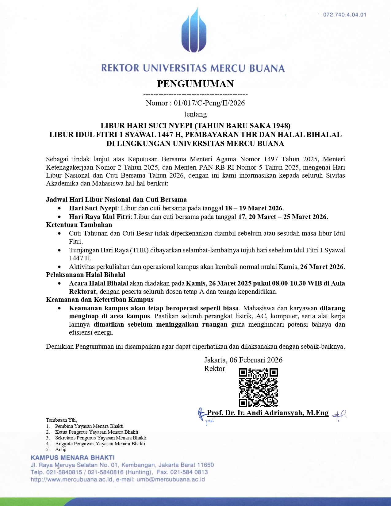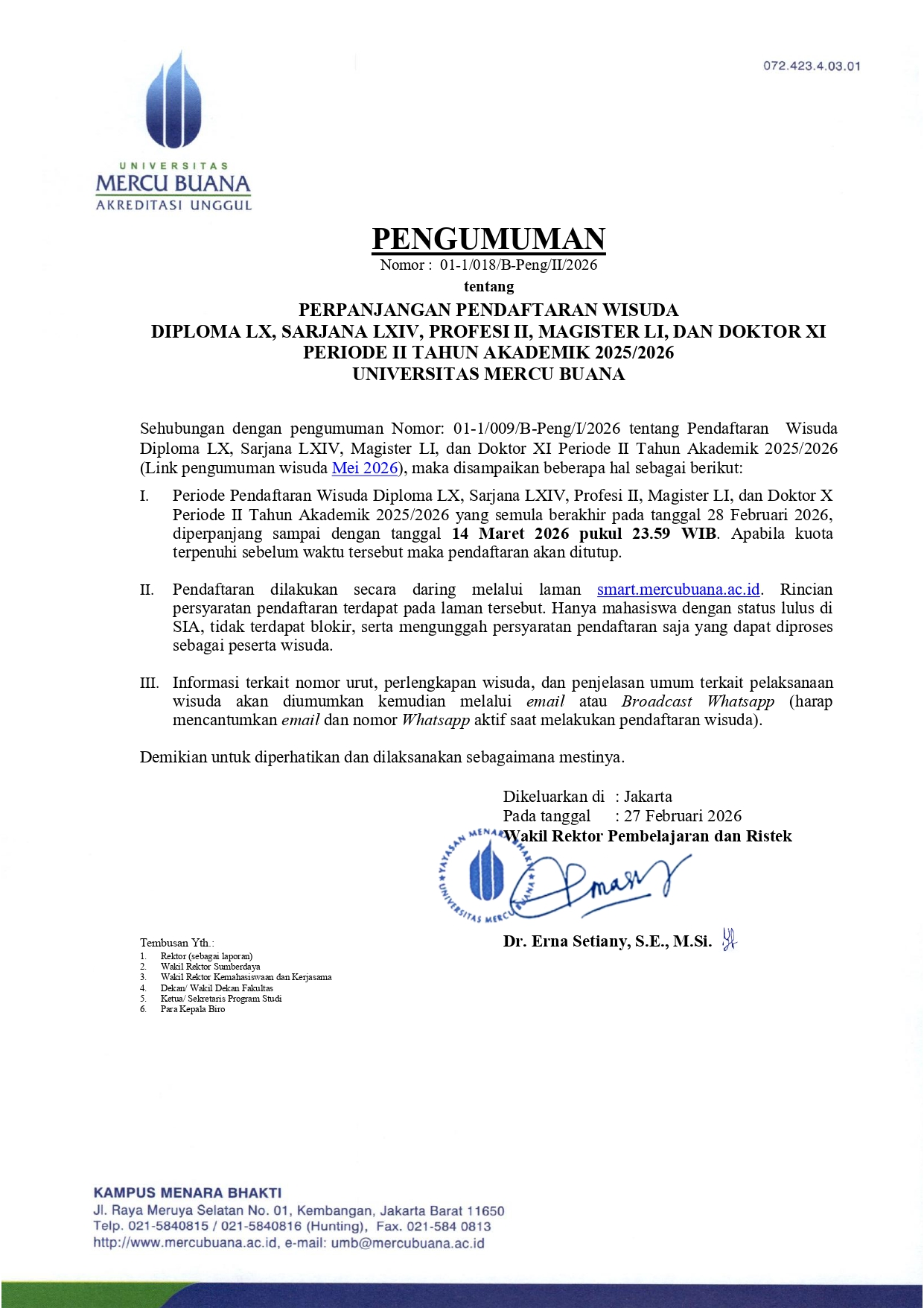 PENGUMUMAN PERPANJANGAN WAKTU PENDAFTARAN WISUDA PERIODE 64 – PELAKSANAAN 13 MEI 2026